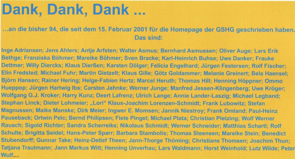 Seit dem 15. Februar 2001 gibt es die Homepage der Gesellschaft für Schleswig-Holsteinische Geschichte (GSHG). Inzwischen beantwortet sie täglich unter der Adresse www.geschichte-s-h.de rund 500 Fragen an die Geschichte des Landes. Sie bietet heute 450 Stichworte und Artikel in einem A – Z. Dazu eine verlinkte Zeitleiste, Aktuelles rund um die Landesgeschichte, Veranstaltungen, Einzelpublikationen und Reihen zum digitalen Download. Geboren ist die Homepage – übrigens im Vorstand damals durchaus umstritten – aus dem Wunsch, keine weitere „Wir-über-uns-Seite“ ins Netz zu stellen, sondern wirklich Landesgeschichte anschaulich, verständlich und wissenschaftlich lektoriert anzubieten. Unter der Internetadresse www.geschichte.schleswig-holstein.de startete das Projekt 2001 auf dem von SNetline betriebenen Portal für das Land mit 153 Stichworten. 2006 wurde das aufgegeben. Die Homepage zog um auf www.geschichte-s-h.de und das ohne wesentliche Einbußen bei der Nutzung. Das bunte und etwas komplizierte Seitendesign wirkte mit der Zeit doch etwas trutschig. So kam es 2015 zum ersten Relaunch. Ein zweiter folgte 2021. Seitdem ist die Homepage sehr übersichtlich und wesentlich aktueller als davor. Die Homepage bietet Stichworte von „Abgeteilte Herren“ bis „Zwangsarbeit“, eine Zeitleiste bis 2025 sowie immer mehr digitale Quellen. Hinter der Homepage stand von Anbeginn eine kleine (natürlich) ehrenamtliche Crew. Webmaster ist seit dem ersten Tag Björn Hansen, Redakteur Werner Junge und Ortwin Pelc als dritter im Bunde. Henning Höppner schuf das Urdesign, Ulrich Lange half wie auch Klaus-Joachim Lorenzen-Schmidt. Insgesamt haben bis heute 94 Autor*innen an der Homepage mitgewirkt. Die Liste liest sich wie das „Who is Who“ der Landes-, Regional- und Lokalgeschichte. Neu in der Redaktion ist Maike Manske von der Landesbibliothek. Wer Fragen an die Geschichte des Landes hat, findet die Antworten sehr wahrscheinlich auf www.geschichte-s-h.de . Und wie seit 25 Jahren: wer Fehler oder Unklarheiten entdeckt oder ein Thema vergebens sucht – besser noch – eines beisteuern möchte, der melde sich bitte unter redaktion@geschichte-s-h.de