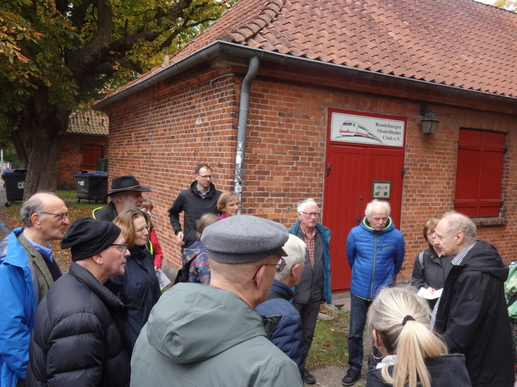 Mit Dr. Jens Ahlers ging es wieder auf Exkursion zu Rendsburg als Wasserstadt mit Eider, Schleswig-Holsteinischem Canal und Nord-Ostsee-Kanal. Knapp 30 Besucher machten sich auf den Weg durch die Rendsburger Wassergeschichte. Der Weg führte vorbei am Pulverschuppen, über den Stadtsee, zum Schiffbrückenplatz, dem ehemaligen Hafen. Über die Schleuskuhlen ging es an die Untereider zum Untereiderhafen, wo heute noch Packhaus und Zollstation von der Zeit des Schleswig-Holsteinischen Kanals (Eiderkanal) zeugen. Am Stadtsee, einem Südarm der Eider, der ehedem Rendsburg umfloss, führte der Weg zurück zum Hohen Arsenal. Die Teilnehmer waren begeistert von dem lehrreichen und amüsanten Ausflug in die Rendsburg Geschichte. Der 5. „Tag der Schleswig-Holsteinischen Geschichte“ hat den meisten Gewinn an Erkenntnissen und Kontakten gebracht sowie Spaß gemacht. Durch die Brunswiker Stiftung konnten alle Besucher und Gäste den ganzen Tag mit allem versorgt werden. Friedrich Rantzau dankte Schriftführerin Vivien Specht sowie den Vorstandsmitglieder Stefan Magnussen und Maike Manske, die die Hauptlast der Planung getragen haben. Zum Erfolg haben natürlich auch alle an den Workshops, den Moderationen und vielen anderen Tätigkeiten, die es braucht, um einen solchen Tag zu organisieren, beigetragen.
