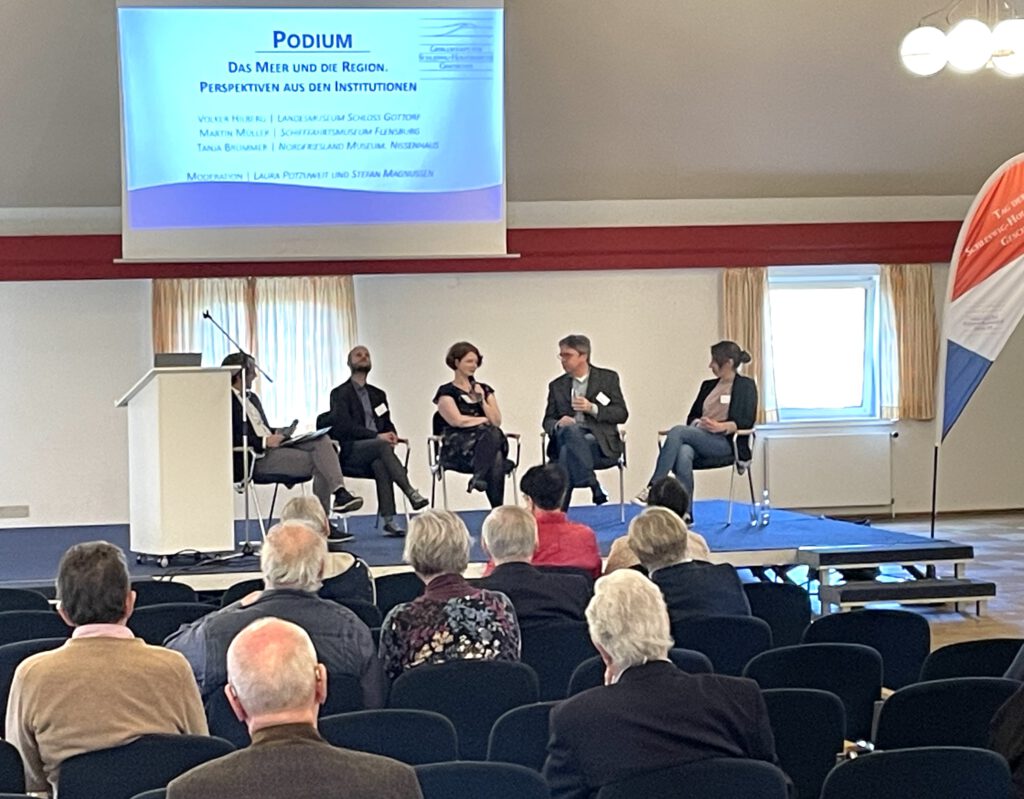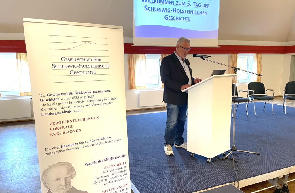 Unterwasserarchäologe Dr. Felix Rösch begeisterte mit seinem Vortrag über die Bergung des in der Mitte des 17. Jahrhunderts in der Trave mit 200 Fässern Branntkalk beladenen Schiffes. Sein Vortrag machte die Komplexität der Arbeiten deutlich und auch, dass es notwendig ist, im Verlauf bei solchen Projekten immer neue Probleme mit neuen Verfahren zu lösen. Nun ist der Schatz an Land und die Archäologen sind gefordert, ihn zu konservieren. Den zweiten zentrale Vortrag des Tages hielt Mikkel Leth Jespersen, Historiker und Vorsitzender des Historisk Samfund for Sønderjylland. Er sprach über die aktuellen Forschungen zur schleswigschen Seefahrtsgeschichte. Beide Vorträge sind im Tagungsband „Mensch & Meer“ nachzulesen. Der lag erneut schon zum „Tag der Schleswig-Holsteinischen Geschichte“ vor. In dem Band sind viele andere Einzelbeiträge zum Thema, eine kommentierte Zeittafel zu den Sturmfluten, die Geschichte des Krabbenfangs, ein Interview zur Hanseforschung sowie ein B bis W mit marinen Stichworten zu finden. Kristof Warda hat den Band mit 162 Seiten zusammengestellt und dabei einige Geschichten aus dem Internetauftritt der GSHG übernommen. Ermöglicht wurde der Tagungsband aus der Reihe „Schleswig-Holstein – Die Kulturzeitschrift für den Norden“ durch einen Zuschuss der Stiftung Sparkasse Mittelholstein von 2.500 € sowie durch die Sparkassenstiftung Schleswig-Holstein in Höhe von 5.000 €.