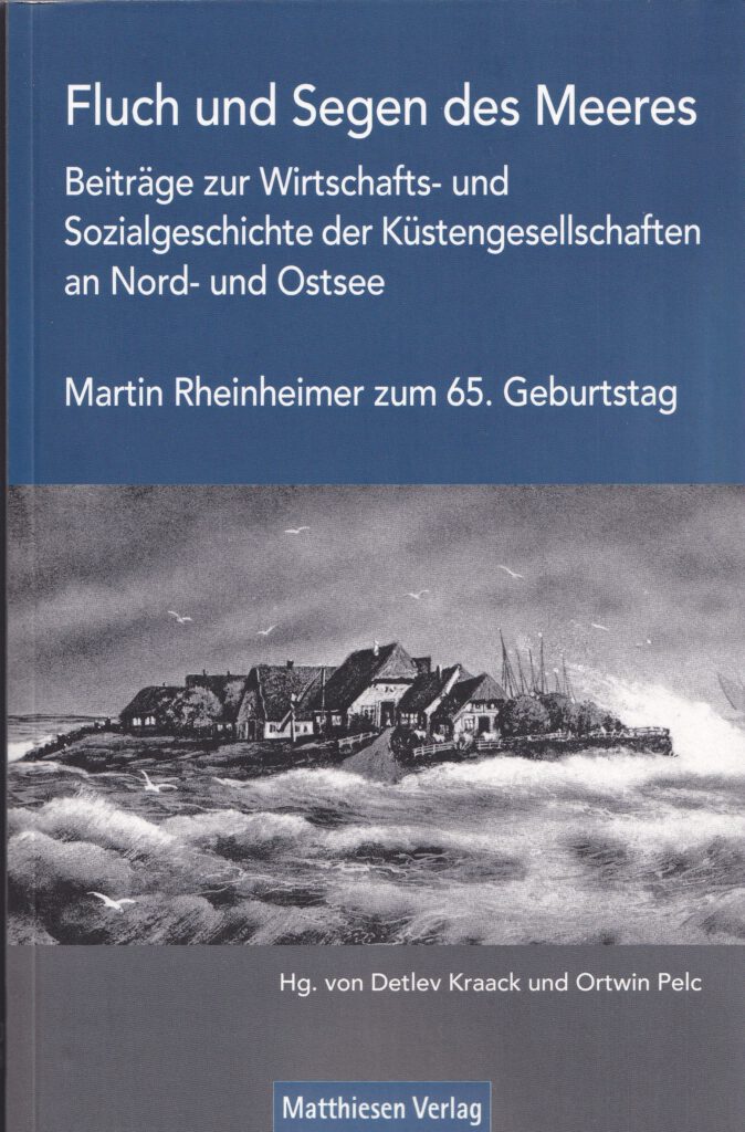 Die Angaben zum Buch: Fluch und Segen des Meeres. Beiträge zur Wirtschafts- und Sozialgeschichte der Küstengesellschaften an Nord- und Ostsee, Martin Rheinheimer zum 65. Geburtstag, herausgegeben von Detlev Kraack und Ortwin Pelc (Sonderveröffentlichung des Arbeitskreises für Wirtschafts- und Sozialgeschichte Schleswig-Holsteins 1), 277 Seiten, Matthiesen Verlag. Husum Druck- und Verlagsgesellschaft, ISBN 978-3-7868-5610-8, Husum 2025.