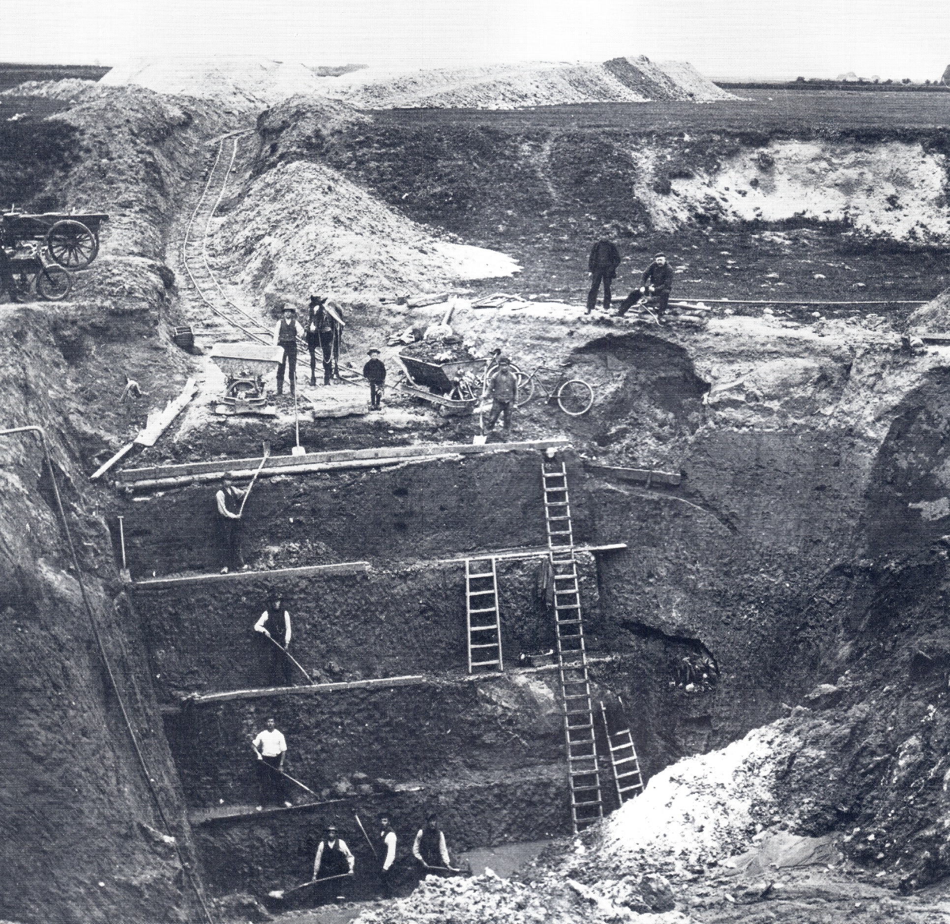 Es passierte wohl um 1770 unabhängig in der Propstei und in Süderdithmarschen: Bauern verteilten beim Graben von Tränkstellen Mergel auf das umliegende Land. Dort wurde im kommenden Jahr ein deutlich höherer Ertrag erzielt. So begann das Mergeln vor gut 200 Jahren. In der Landschaft Angeln nahm der Gutsbesitzer Jacob Iversen (*1763-1831†) auf Schwensby-Hof die Idee auf und begann 1804 seine Ländereien zu mergeln. Seine Erfahrungen schrieb er auf und fand so immer mehr Nachahmer. Der Abbau des Mergels aus den offenen Gruben auf dem Hügelland sowie vor allem der Transport in die Heide- und Moorgebiete (Moor) waren allerdings zu dieser Zeit technisch und finanziell nicht möglich. Machbar wurde dies gegen Ende des 19. Jahrhunderts durch dampfbetriebene Eimerbagger und Feldbahnen. Nun konnten große Flächen gemergelt werden. Weil allerdings einzelne Landwirte solche Großprojekte nicht umsetzten konnten, wurden die Kräfte in Mergelgenossenschaften gebündelt. Der preußische Staat unterstützte diese finanziell. Erst dadurch gelang es, Böden im großen Umfang zu verbessern (Melioration). Von 1894 bis 1914 wurden allein auf der schleswigschen Geest 100.000 Hektar „bemergelt“. Das brachte viele Jahre bessere Ernten. Doch dann ließ der Ertrag nach. Die Bodenverbesserung kam in Verruf. Es hieß: „Mergeln bringe reiche Väter und arme Söhne“. Warum das so war, fand der Agrikulturchemiker Justus von Liebing (*1803-1873†) nach 1840 heraus. Der Kalk im Merkel aktivierte die im Boden vorhandenen Nährstoffe. Waren diese aufgezehrt, mussten sie nachgeführt werden, also der damals neue „Kunstdünger“ eingesetzt werden. Dieser war im Zuge der Industrialisierung verfügbar und sorgte dafür, dass Nährstoffe in das Erdreich kamen, die reiche Ernten auch über eine lange Zeit ermöglichen.